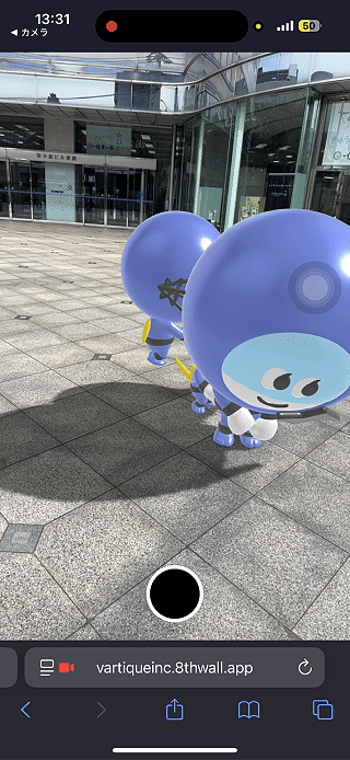 そこで、現地に行けない方でも楽しめるよう、平面認識ARではキューニンをタップすると